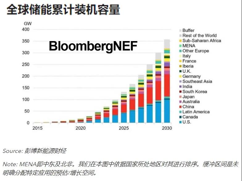 我们将2030年累计储能装机容量的11%划为缓冲区间,希望能够说明一些已知的不确定性。这些不确定性包括我们目前缺乏了解的市场,以及我们目前已做出预测但未来可能提出更激进政策的市场。