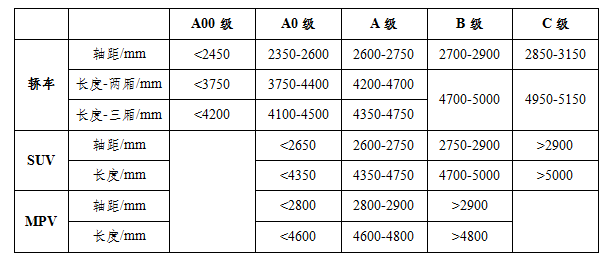 注:当车长和轴距无法匹配以上划分标准,则以轴距为唯一划分依据。