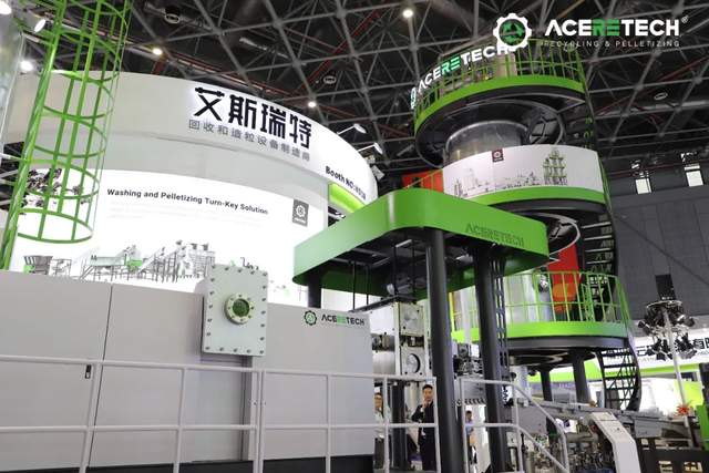 ▲江苏艾斯瑞特机械有限公司展示了PET瓶到瓶食品级再生技术。它能够减少废物、节约资源,并减轻对环境的影响。
