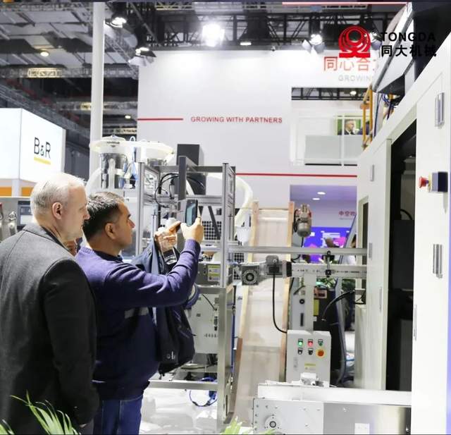 ▲苏州同大机械有限公司展出的全电动HSE系列设备,拥有节能高效、高精度、远程智能的优势,比液压吹塑设备能耗节约30%-50%,产量提高10-15%。自主研发程序以及获得多项专利的关键技术,展现了同大的创新技术实力。