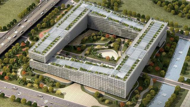 中建八局上海美的全球创新园区项目位于西虹桥商务区,占地面积8.1万㎡,总建筑面积40.28万㎡,地下三层,地上十层。本工程由两栋L形塔楼组成,每栋塔楼布置7个核心筒,地上采用以钢板剪力墙核心筒为竖向支撑,索+钢桁架+钢框架为水平承重的群筒-大跨度斜拉复杂结构。
