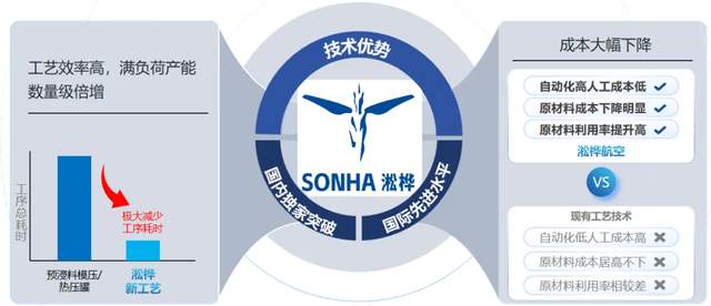 公司开发了具有自主知识产权的新一代自动化复合材料制备工艺,革新了传统半手工复合材料制造工艺,桨叶产品具有独特的内部结构,产品一致性好,合格率高,成本低,产能是行业一般水平的10倍以上。借助技术优势,可实现复合材料桨叶的敏捷开发、低成本试制打样,满足客户的不同需求。