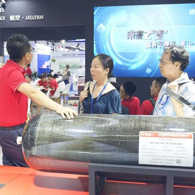 在新型储能领域,本次展出的450L 35MPa 车载Ⅲ型储氢瓶和9L 35MPa 无人机用储氢瓶、260L 20MPa 天然气瓶等产品,也受到了现场观众的热捧,未来,将广泛应用于氢能源商用车、城市公交、船舶及低空飞行器等领域。