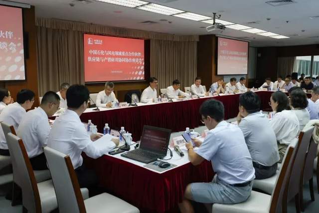 发运仪式后,同步召开风电领域重点合作伙伴供应链与产销研用协同协作座谈会。集团公司物资装备部会同科技部、化工事业部、上海石化、湖南石化、新星石油等集团内部单位,与中国中车、三一重能、上海电气、东方电气、南京海拓、重庆风渡等风电领域重点合作伙伴进行交流研讨,旨在合力提升风电产业链供应链的韧性和安全水平。