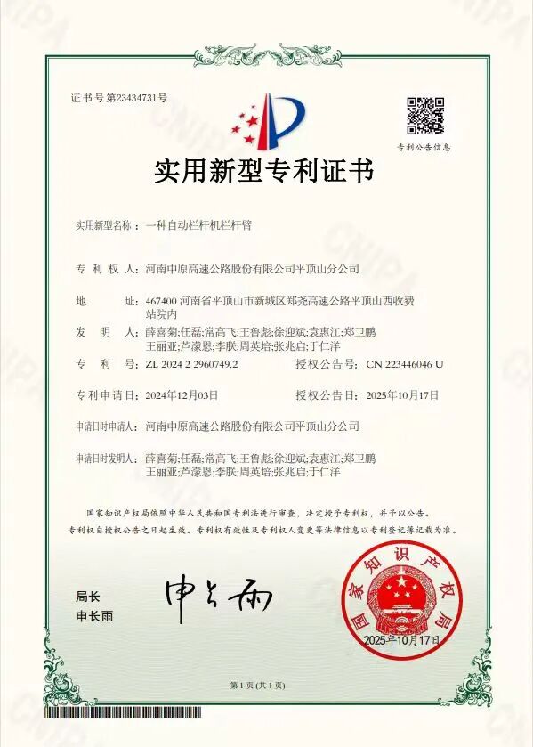 目前,该款自研碳纤维栏杆臂已在中原高速平顶山分公司所属全部收费站点完成批量换装。从实际应用数据来看,分公司年均运维成本降低约3万元,通行效率提升15%以上,有效缓解了高峰时段的车道拥堵压力。