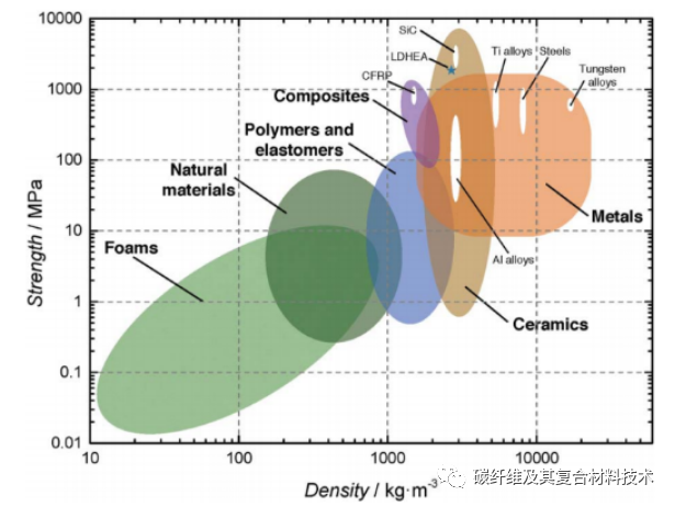 复合材料通常是以金属、陶瓷和聚合物为基体,为了提高材料的机械性能和热性能,通常在基体中加入一些更坚硬、更强的元素作为增强剂。大多数复合材料的主要增强和承重材料是碳纤维。